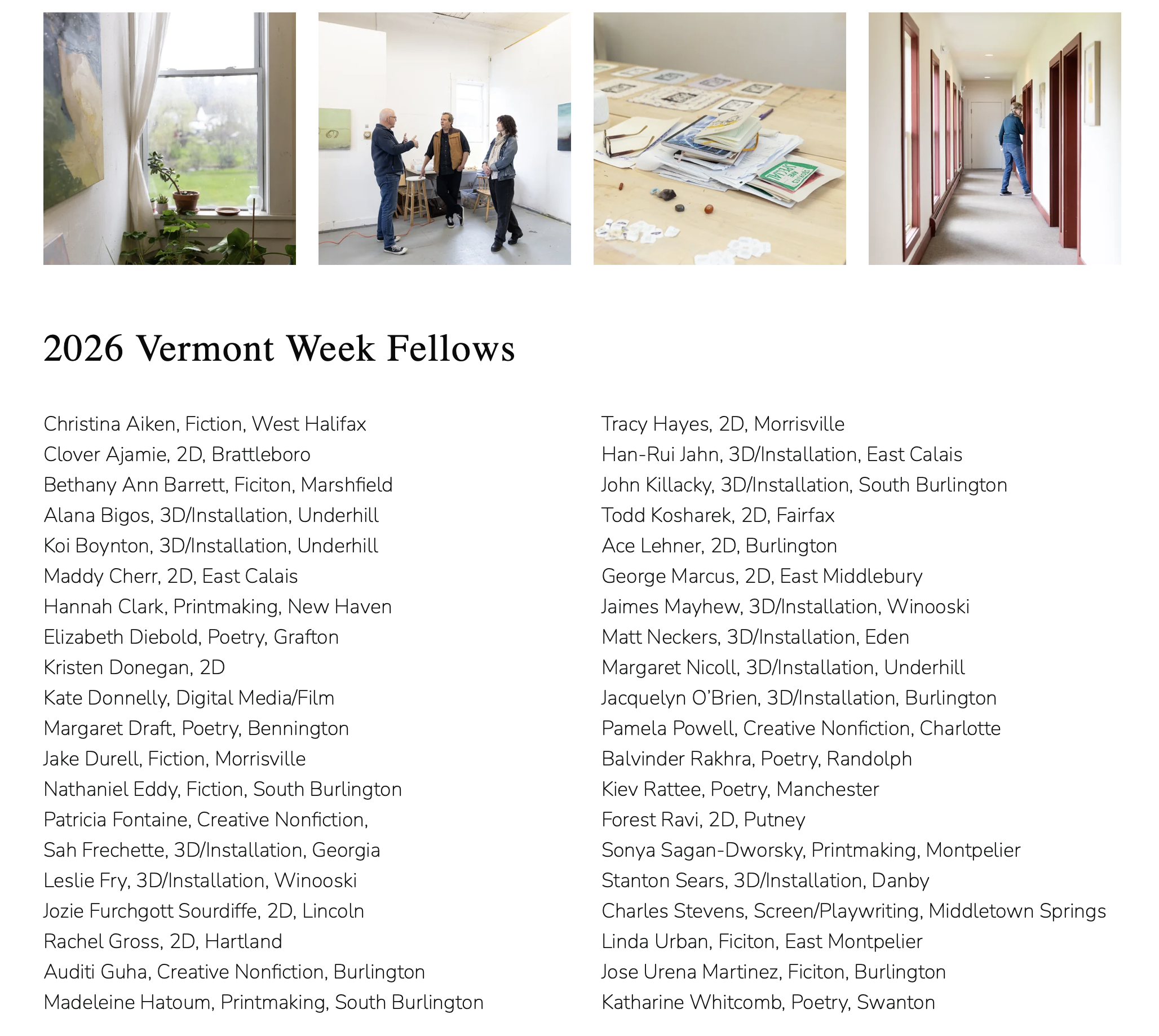 Vermont Studio Center, May 4-11, 2026.